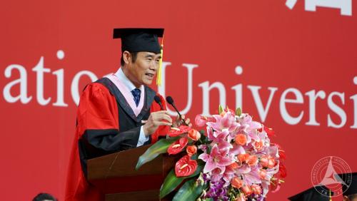 典礼上,戏剧影视学院李立宏教授代表教师发言,叮嘱毕业生们要永远保持善良和真诚,始终将校训之首“立德”记在心上,保持探索和好奇心,在实践中不断提升自我。