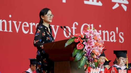 毕业生家长代表、2015级动画与数字艺术学院数字媒体艺术专业孙祎婧同学的母亲回顾了孩子在中传的成长与蜕变,向学校表达敬意与感谢。