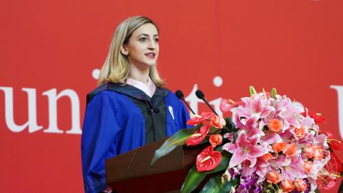 廖校长指出,过去几年来,学校的实力更强了,美誉度“爆棚”了,校园更美了,中传人变得更加自信、更加挺拔,这是全体师生用奋斗书写的传奇。新时代是值得奋斗的时代,也是奋斗者的时代。他希望毕业生们像母校一样“很拼”,做一个坚定者、奋进者、搏击者,到国际舞台上去,到祖国最需要的地方去,与时代同频共振奋斗、与国家同心同向奋斗,通过奋斗努力创造美好的生活,实现自己的幸福人生。