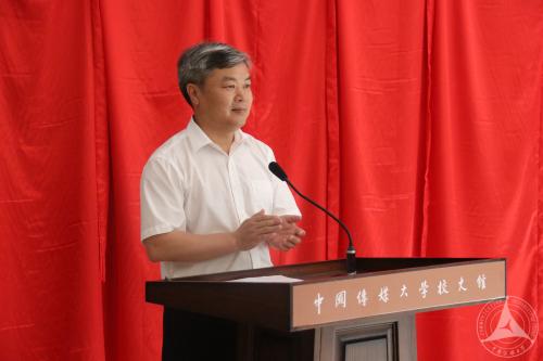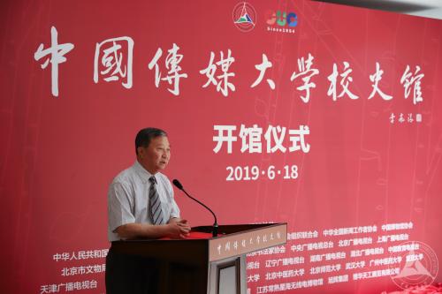 陈文申书记代表学校致辞。他深情回顾了学校65年来从培训班、专科学校到综合性大学、一流学科大学的跨越式发展;回顾了学校从一栋孤独的灰楼壮大为今天楼宇林立、设施齐备、环境优美、宁静安全的华丽转变;回顾了学校在教学科研和队伍建设不断前行的同时,源源不断地为国家的传媒事业输送大批优秀人才的光辉历史。陈书记说:“一所没有校史馆的大学是不完整的大学。中国传媒大学自建校以来,一直缺少校史馆来记忆和呈现那一茬又一茬为学校赢得无上光荣和骄傲的人,缺少一个可以用来感染和激励后来者、增强学校发展自信,传承爱国爱校教育的精神家园。今天,在65周年校庆到来之际,这个记载着65年美丽篇章的校史馆的建成与开放,终于填补了学校的历史空白,书写着中传历史的再出发,也实现了自己作为书记7年以来的夙愿。”