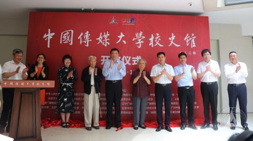 中广联合会会长张海涛、中国记协书记处书记王冬梅、民政部民间组织局副局长廖鸿、国际博物馆协会副主席安来顺、北京市文物局副局长王翠杰、中国传媒大学党委书记陈文申、中国传媒大学校长廖祥忠、老校长常振铮、中国传媒大学荣誉校长刘继南、旭辉集团副董事长林伟共同为中国传媒大学校史馆揭幕,见证中国传媒大学校史馆正式对外开放。