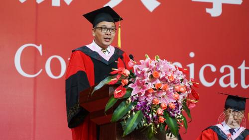 典礼上,戏剧影视学院李立宏教授代表教师发言,叮嘱毕业生们要永远保持善良和真诚,始终将校训之首“立德”记在心上,保持探索和好奇心,在实践中不断提升自我。