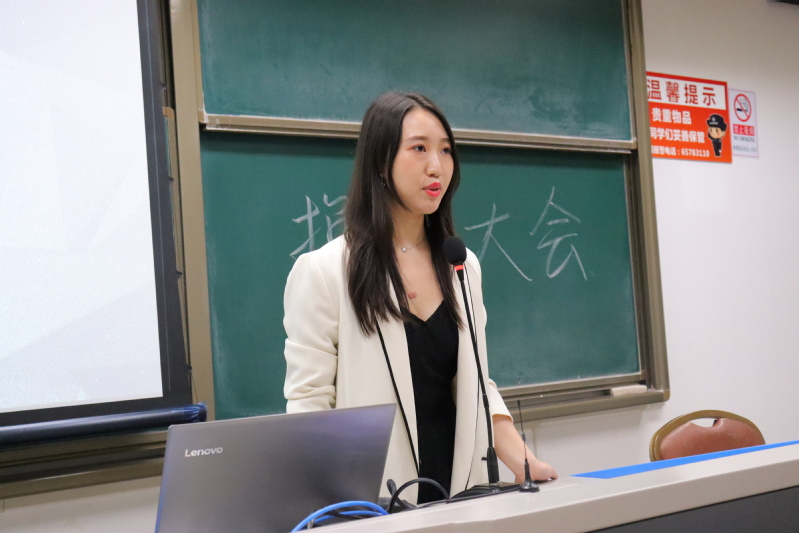 在现任主席代表杨环宇的发言中,她详细回顾了校友服务发展中心的建设历程及自身的学生工作经历,分享大学生活中学生工作给自己带来的巨大成长与成就。她亦向在座的新进19级委员们表达了殷切的期望,希望在他们的加入后,校友服务发展中心能建设得越来越好。