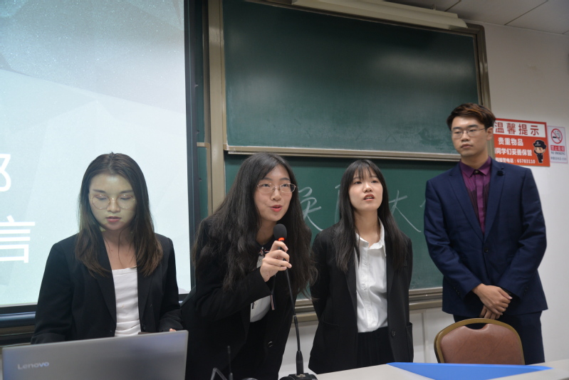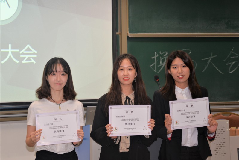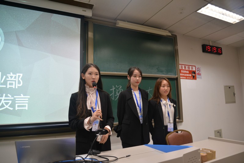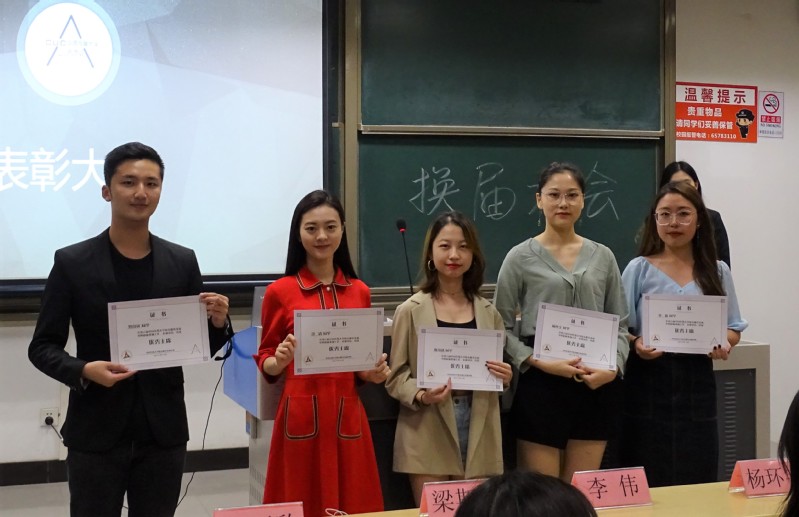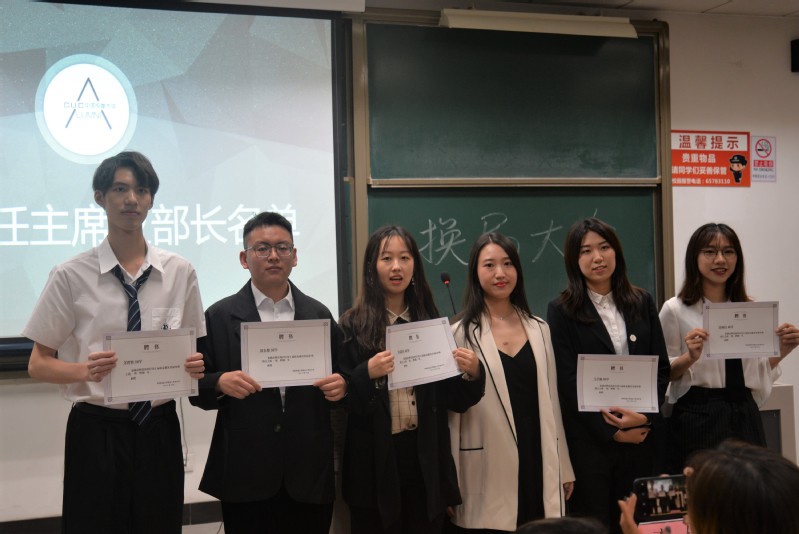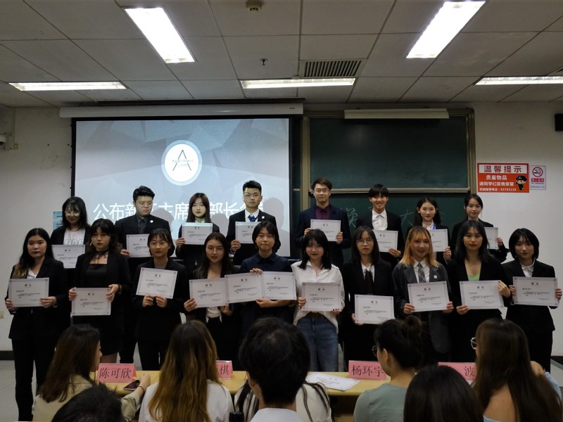 随后主持人宣读新任主席及部长名单,并由教师代表向他们颁发聘书。新任主席团依次上台发言,对过去的工作进行了总结的同时,也向在座的新进委员们分享了在学生工作中所获取到的经验:如做事需勤勉,学会主动思考,部门间要努力协作配合等,同时他们也表示在未来一年的工作中将会各司其职、紧密配合,协同校友工作办公室推动校友工作更好地开展。
