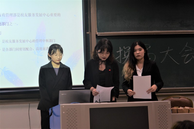 大会伊始,校友工作办公室的教师代表进行发言,代表校友工作办公室向各位新加入的19级委员表示欢迎,并简要介绍了校友工作办公室及校友服务发展中心的主要工作与发展近况,并对大家未来的工作发展寄予了热切的期望。