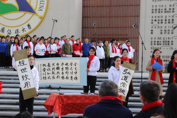 人文学院师生在校庆歌会中创作并献上书法作品