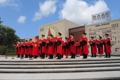 上午9时,姜绪范副书记宣布毕业典礼暨学位授予仪式正式开始,校领导与全体毕业生一起高唱国歌,浓浓的爱国情、爱校情跨越千山万水,激荡在心中。